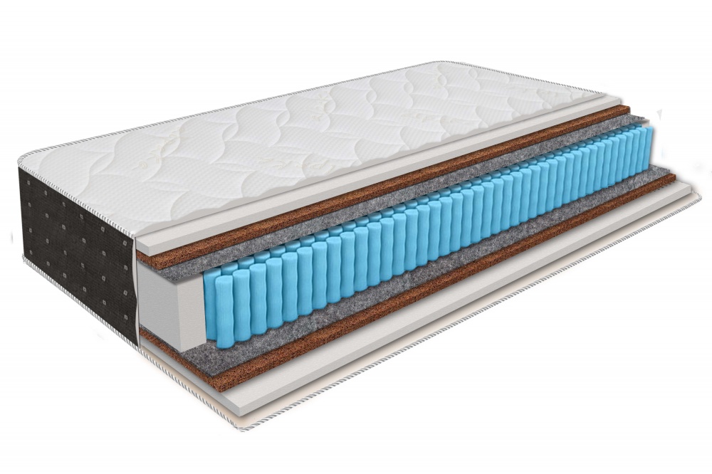 Блок независимых пружин S1000 (не менее 500 пружин на м2), кокосовая плита и аэропена.